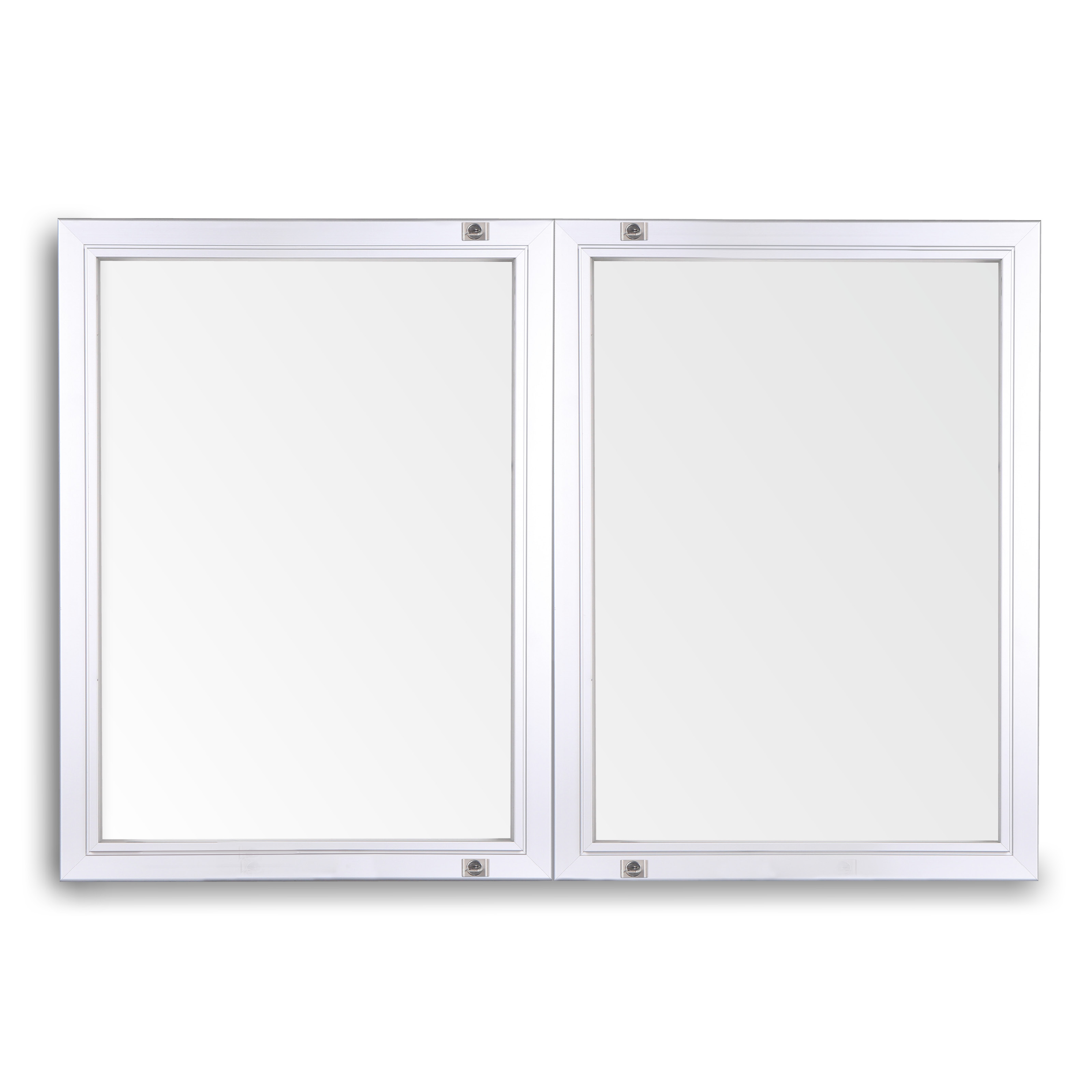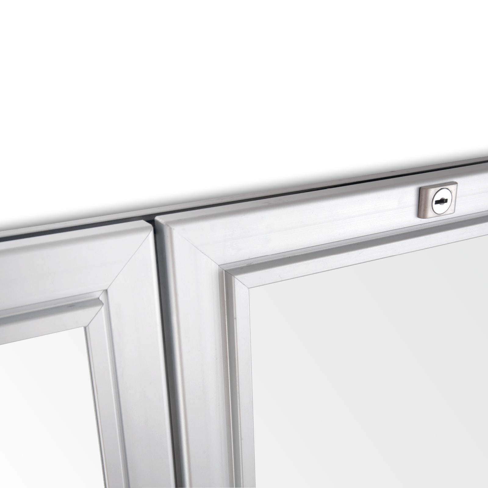 Dwudrzwiowa konstrukcja gabloty wyposażona jest w drzwi przylgowe otwierane skrzydłowo, co wzmacnia jej wodoszczelność oraz zapobiega parowaniu. Cztery zamki umieszczone w profilu gwarantują dodatkową ochronę, uniemożliwiając dostęp do wnętrza osobom niepowołanym. Dzięki otworom montażowym w narożnikach, gablota jest łatwa w instalacji, a jej zawiasy na dwóch mosiężnych sworzniach obrotowych zapewniają płynność działania i trwałość konstrukcji.