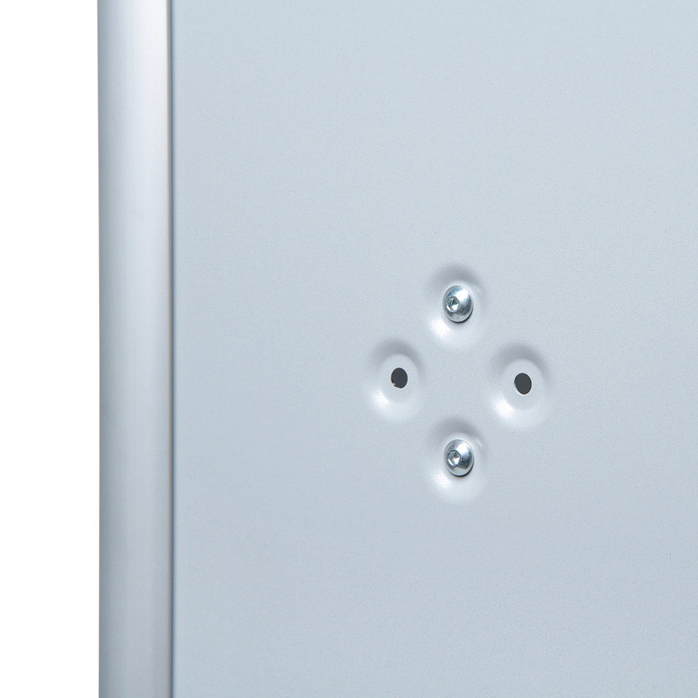 Ramy zatrzaskowe o profilu 25 mm ułatwiają wymianę plakatów w szybki i prosty sposób, umożliwiając regularne aktualizowanie treści. Narożniki ramek mogą być ostre lub zaokrąglone, co pozwala na dopasowanie ich do różnych stylów i preferencji. Eleganckie wykończenie sprawia, że Capo dobrze wpisuje się w estetykę nowoczesnych wnętrz.