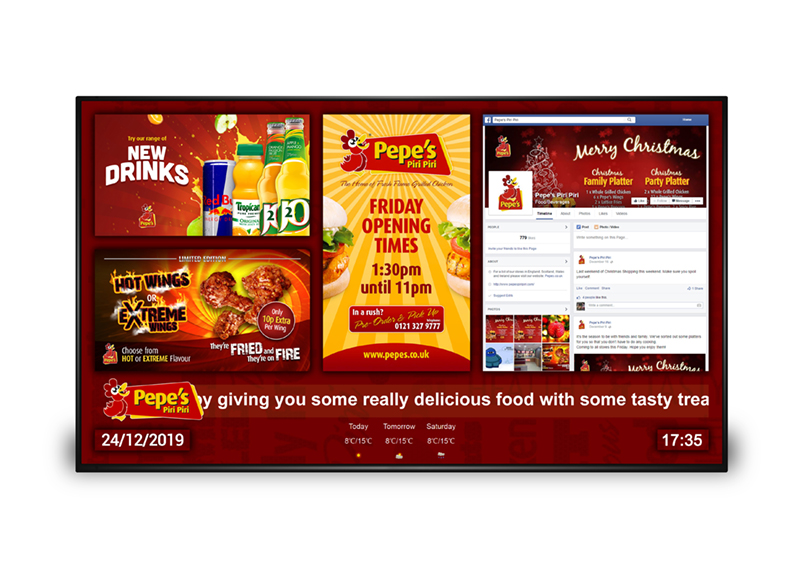 Możesz zsynchronizować cyfrowe menuboardy, które są podłączone do tej samej sieci. Idealne rozwiązanie dla menu zawieszonych nad ladą.