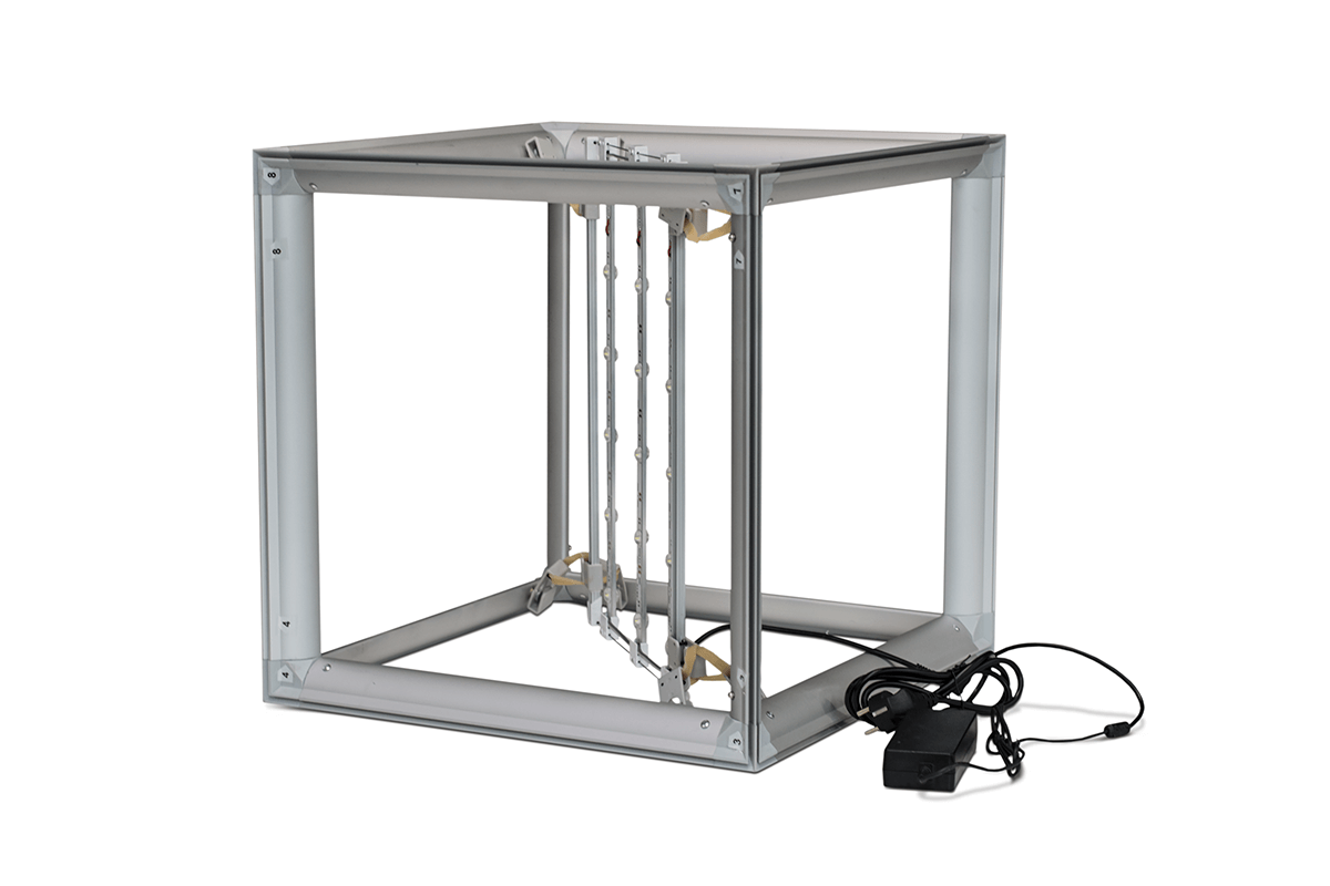 Strona główna » STELAŻE DO WYDRUKÓW » STANDY REKLAMOWE » Podświetlana kostka reklamowa 50x50x50