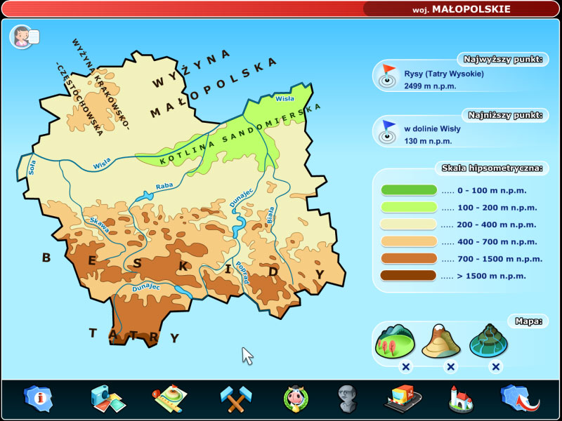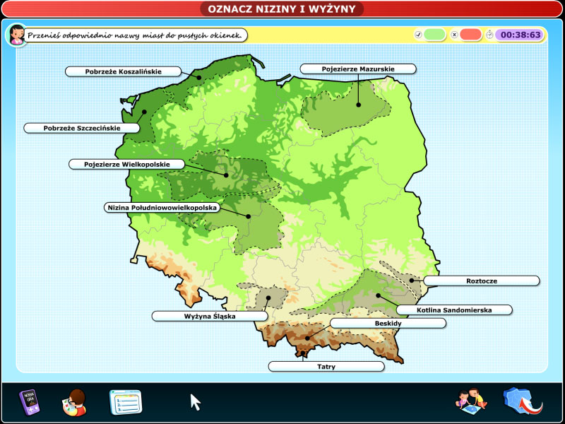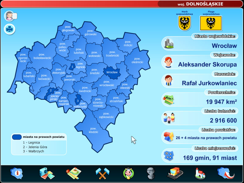 Części rozrywkowa zawiera gry edukacyjne w komiksowej formie, sprawdzające znajomość topografii Polski.