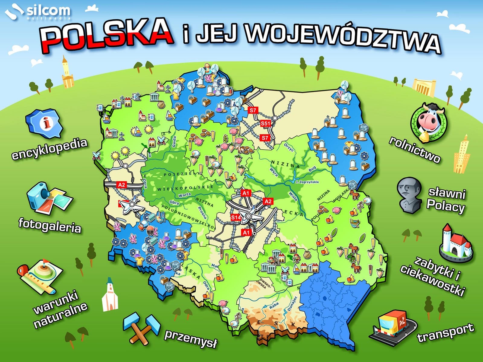 Multimedialny program edukacyjny "Polska i jej województwa" to innowacyjne narzędzie, które w przystępny sposób wprowadza dzieci w tematykę podziału administracyjnego Polski. Program jest przeznaczony dla uczniów szkół podstawowych i składa się z dwóch części: edukacyjnej i rozrywkowej. Część edukacyjna zawiera szczegółowe informacje na temat województw, w tym dane statystyczne, warunki przyrodnicze, przemysł, rolnictwo, zabytki oraz sylwetki sławnych Polaków. Uzupełnieniem są mapy graficzne i fotografie, które pozwalają lepiej poznać każdy region kraju. Część rozrywkowa, w formie gier edukacyjnych, sprawdza zdobytą wiedzę o topografii Polski w formie zabawy. Program jest doskonałym narzędziem do wykorzystania na tablicach interaktywnych, wspierając naukę w atrakcyjny i angażujący sposób.