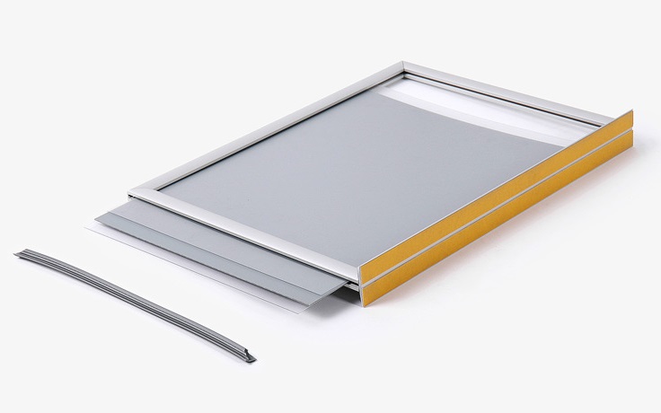 Aby wymienić plakat, należy otworzyć ramę, wyciągnąć stary plakat i wsunąć nowy, upewniając się, że jest równo ułożony. Gumowa uszczelka zabezpiecza plakat i zapobiega jego przesunięciu, a rama zatrzaskuje się z powrotem, chroniąc zawartość przed wilgocią i kurzem.