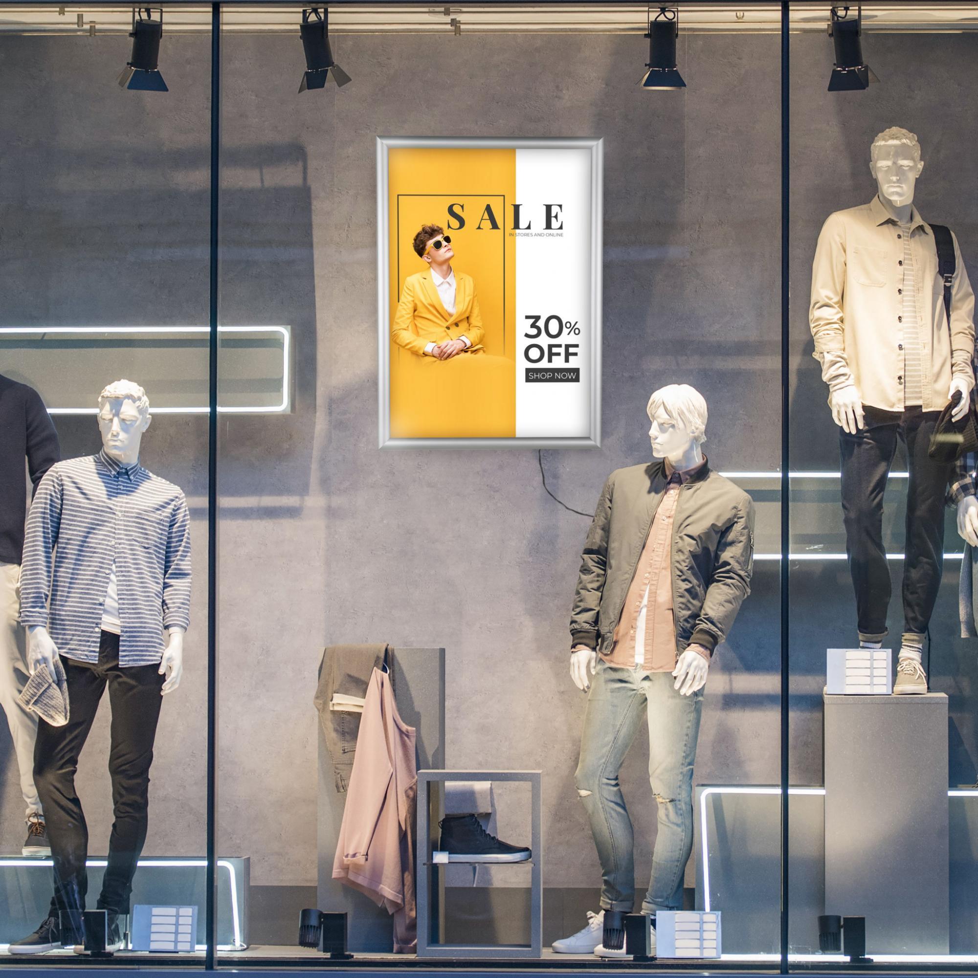 Wymiana plakatów jest bardzo łatwa dzięki ramce zatrzaskowej, która umożliwia szybką zmianę bez konieczności zdejmowania ramy ze ściany. To sprawia, że aktualizowanie treści reklamowych jest szybkie i wygodne.