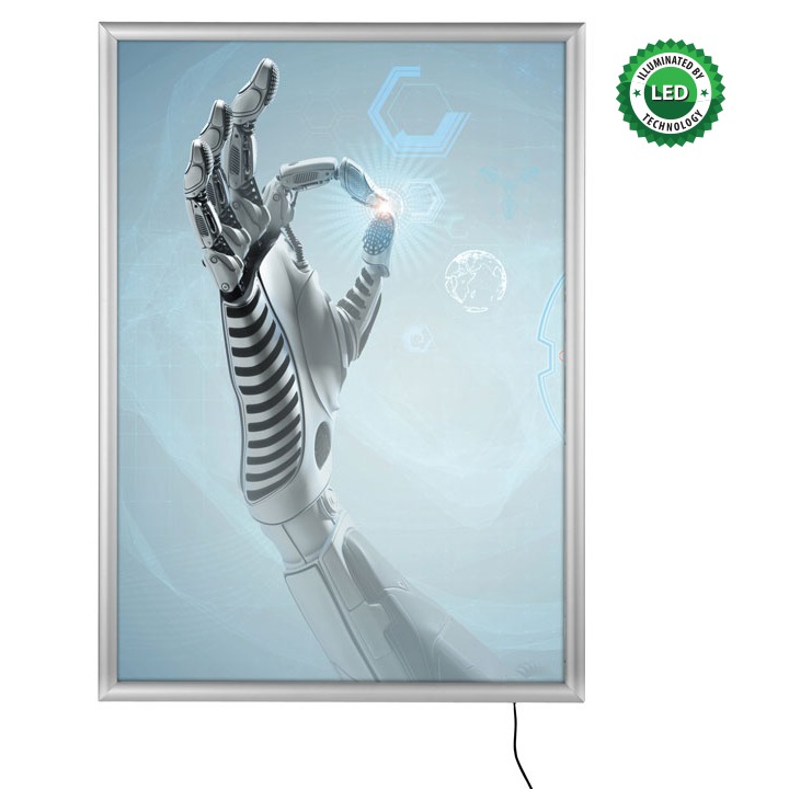 Wymiana plakatów jest szybka i prosta dzięki ramce zatrzaskowej, bez konieczności zdejmowania jej ze ściany. Produkt zawiera antyrefleksyjną folię, która równomiernie rozprasza światło, zapewniając doskonały efekt wizualny. Plecy ramki wykonane są z akrylu. Do druku plakatów zalecamy stosowanie folii do podświetleń. LEDBOX jest energooszczędny – pozwala zaoszczędzić do 60% kosztów energii.