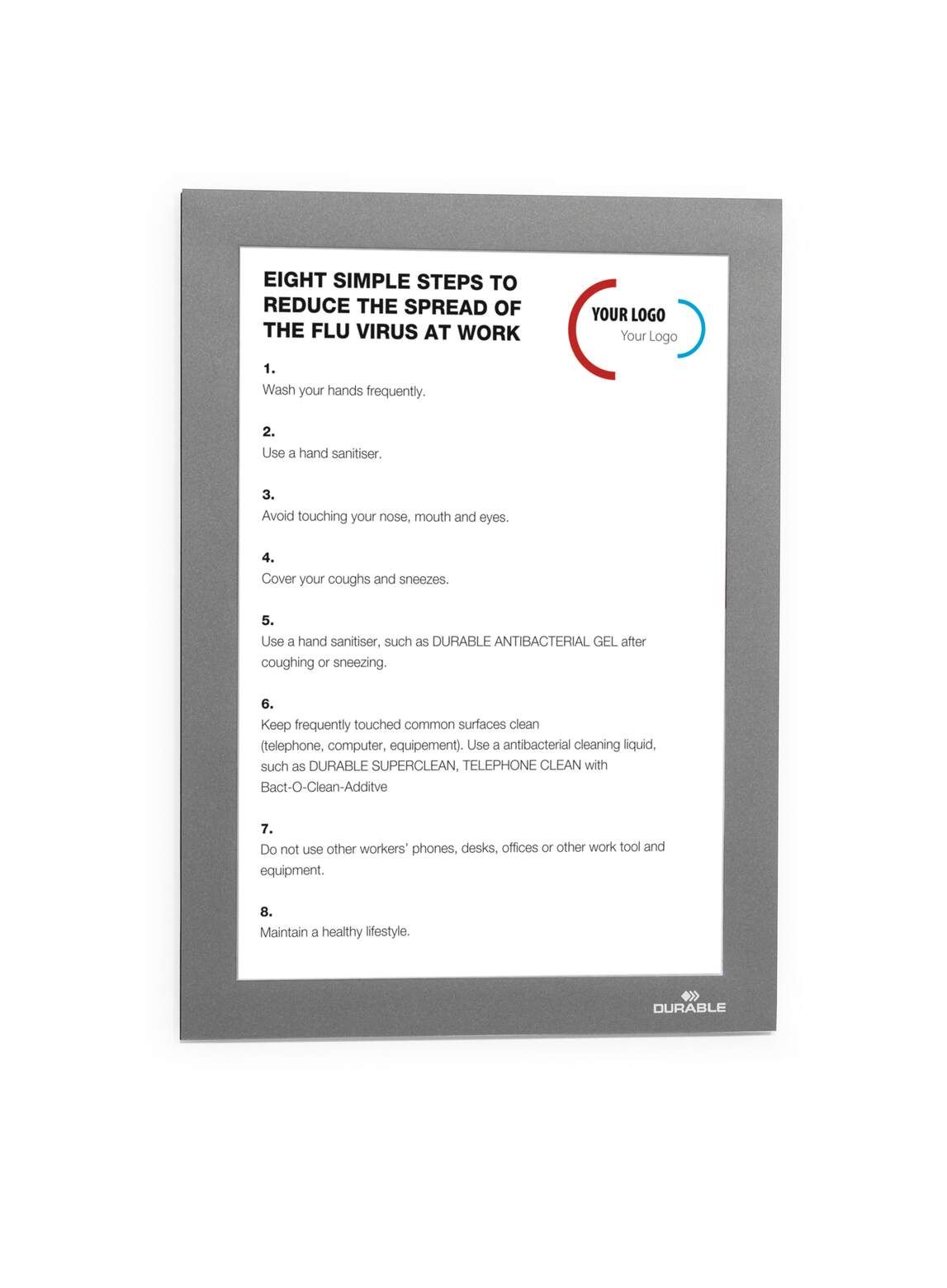 Ramkę Durable należy umieścić wyłącznie na gładkich powierzchniach. Odklejenie jest możliwe tylko z twardych i gładkich powierzchni (np. szkła).