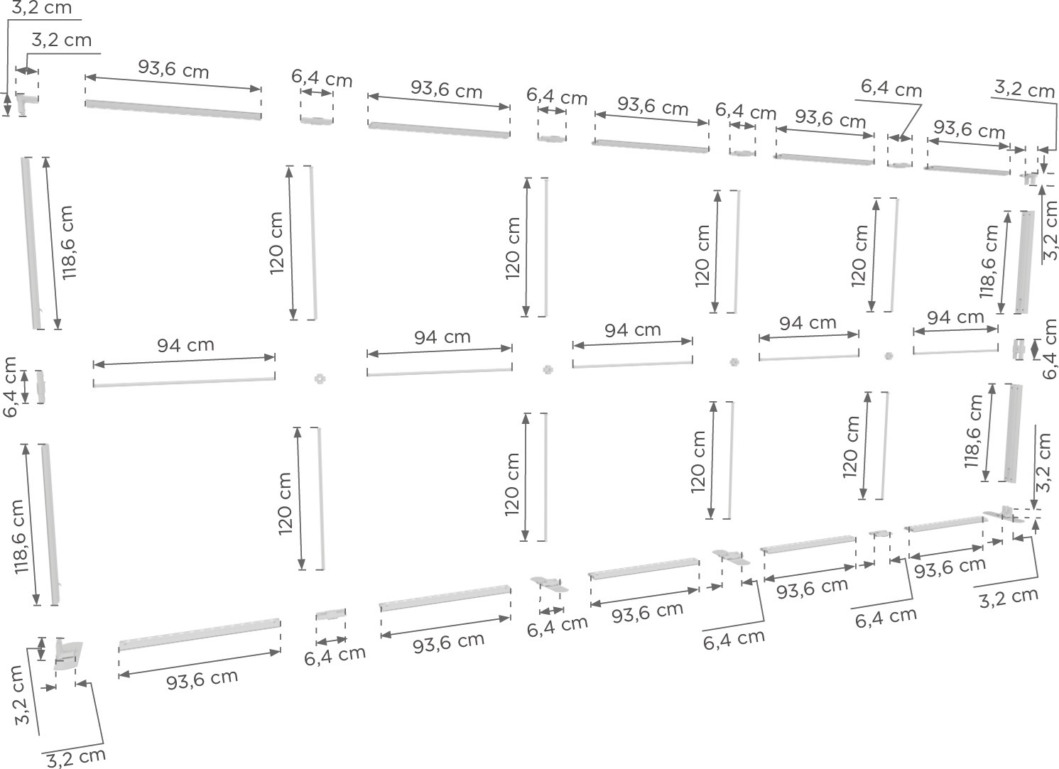 Wymiary w opakowaniu indywidualnym:48x28x132 cm + 45x27x132 cm
