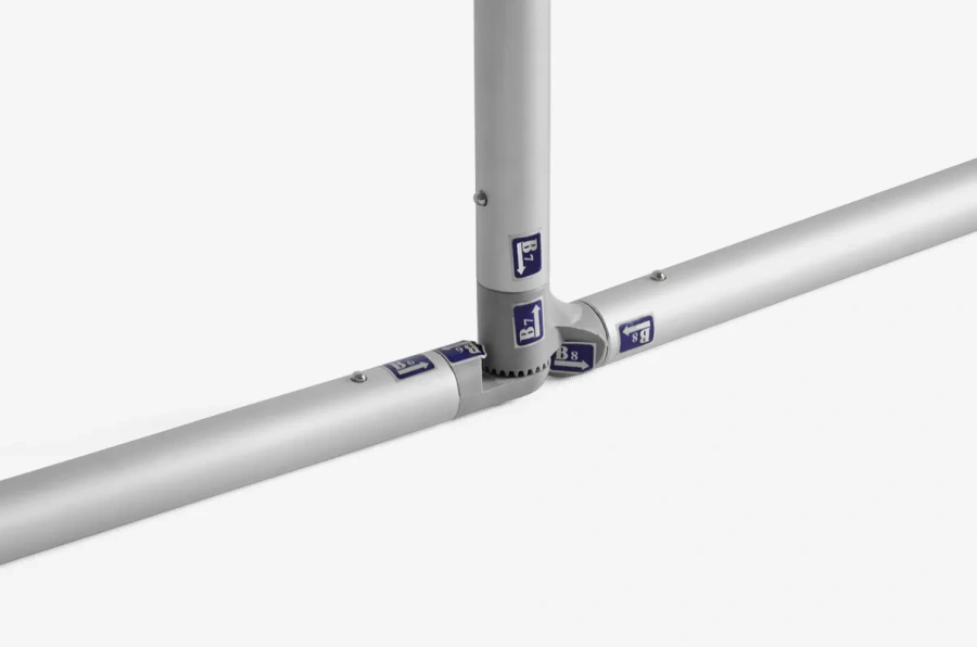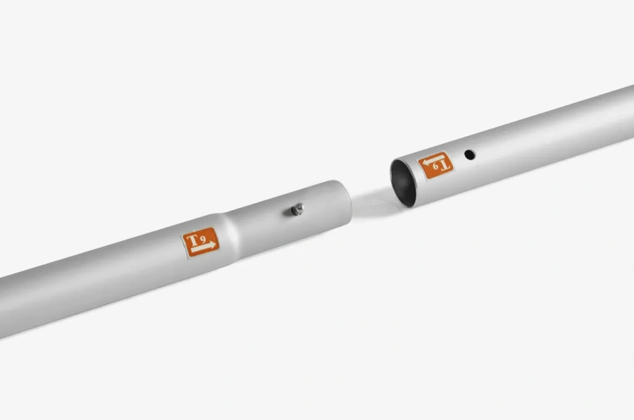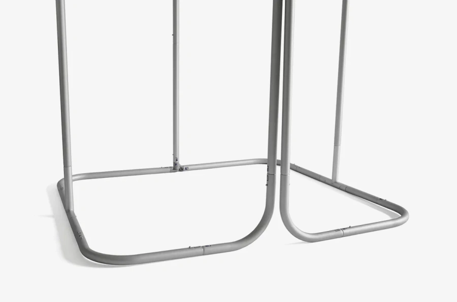 Montaż zajmuje kilka minut, ponieważ aluminiowe elementy łączą się za pomocą zatrzasków, a materiał tekstylny łatwo naciąga się na konstrukcję.