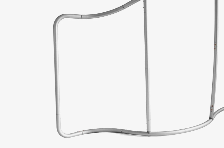 Ścianka tekstylna Twist 390x230 wyróżnia się spiralnym kształtem, który dodaje dynamiki i nowoczesności. W przeciwieństwie do klasycznych prostokątnych ścianek, ten model nie tylko eksponuje treść reklamową, ale też buduje intrygujący efekt wizualny, przyciągając uwagę odbiorców.