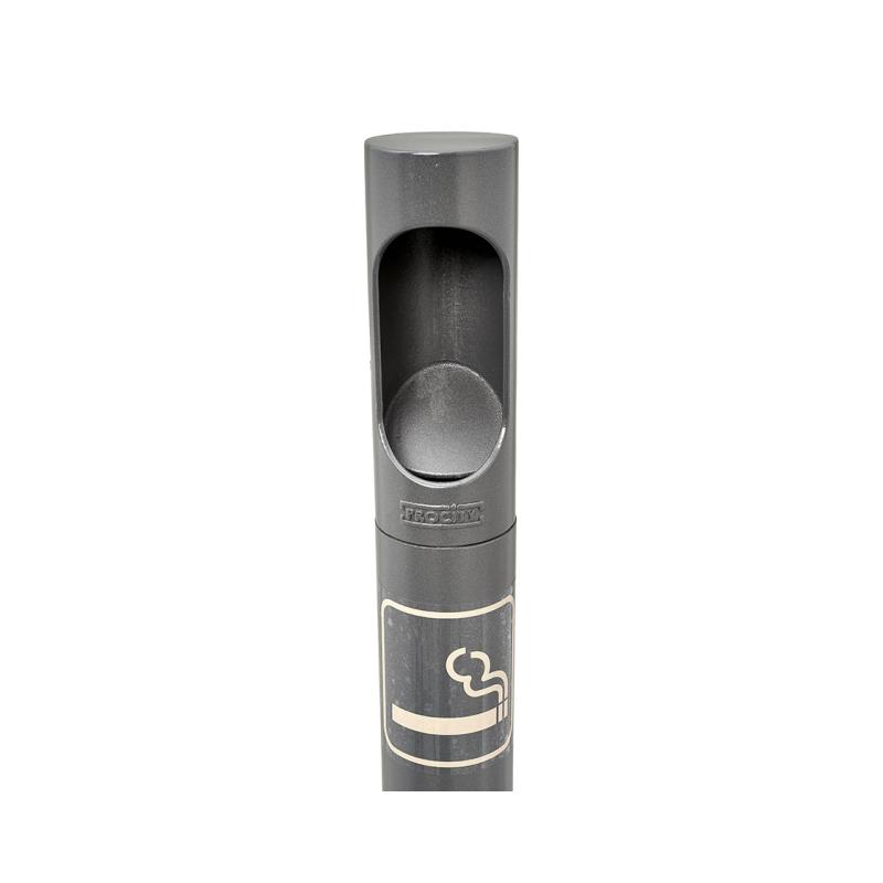 Solidna konstrukcja wykonana z ocynkowanej ogniowo stali, uzupełniona gałką z odlewu aluminium, gwarantuje odporność na korozję i niekorzystne warunki atmosferyczne. Słupek posiada specjalną płytkę do gaszenia papierosów, która zapobiega wrzucaniu większych odpadów, co dodatkowo chroni środowisko i utrzymuje czystość.