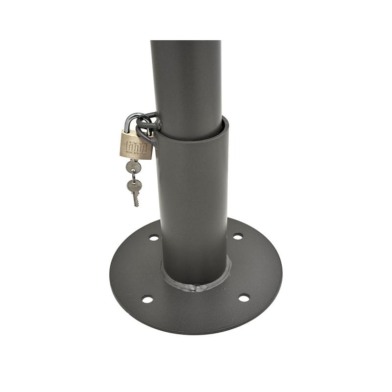 Tak, słupek wyposażono w zamknięcia: trójkątny klucz w modelu z tuleją do zabetonowania lub kłódkę w modelu mocowanym na płycie.