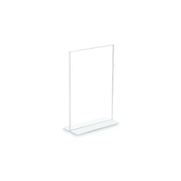 Dwustronna konstrukcja stojaka Crystal A7 to jego wyjątkowy atut – pozwala ona na umieszczenie informacji po obu stronach. To rozwiązanie sprawia, że stojak jest idealny do ustawienia na stołach, ladach i recepcyjnych blatach, gdzie przestrzeń jest często ograniczona, a informacja powinna być dostępna z każdej strony.