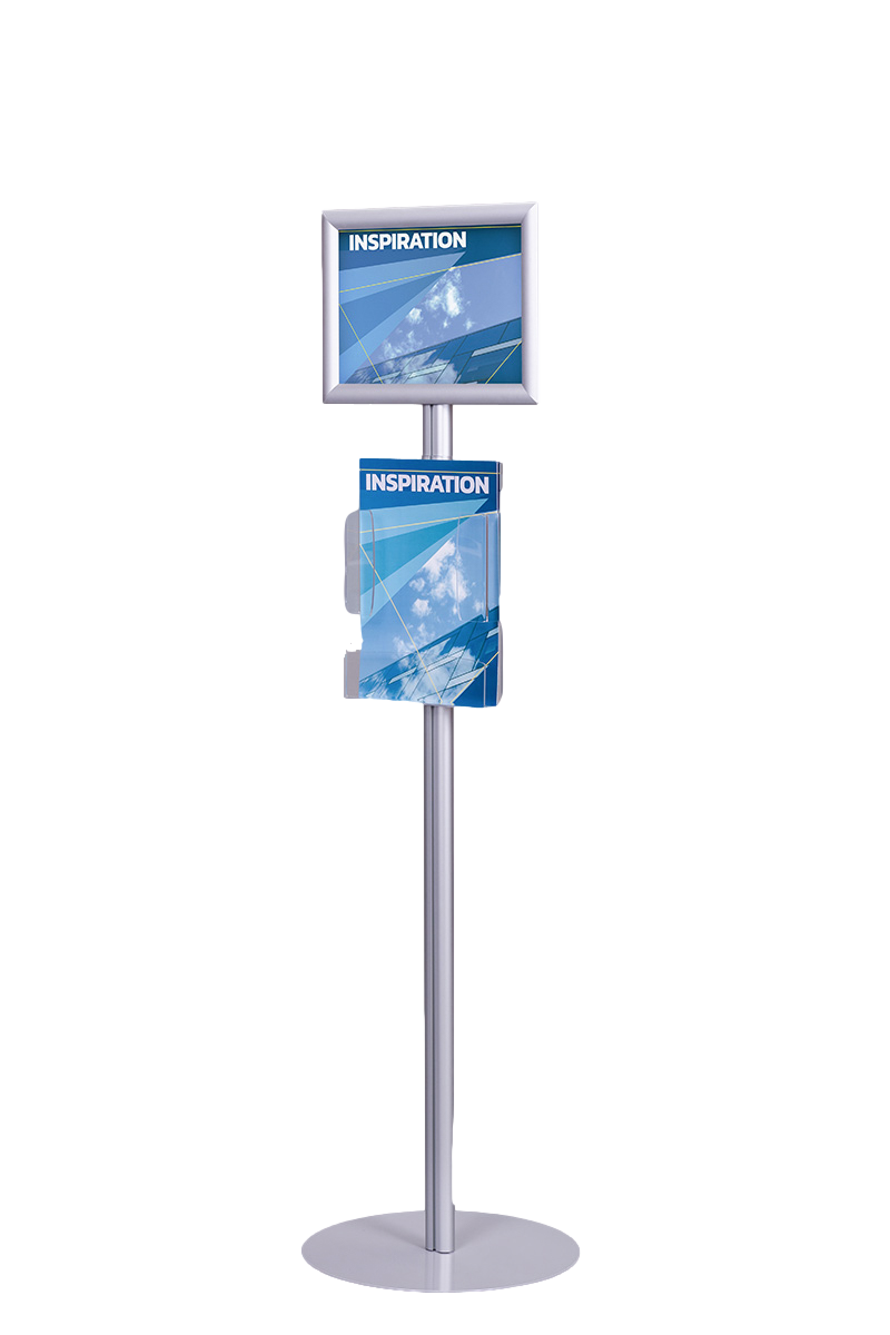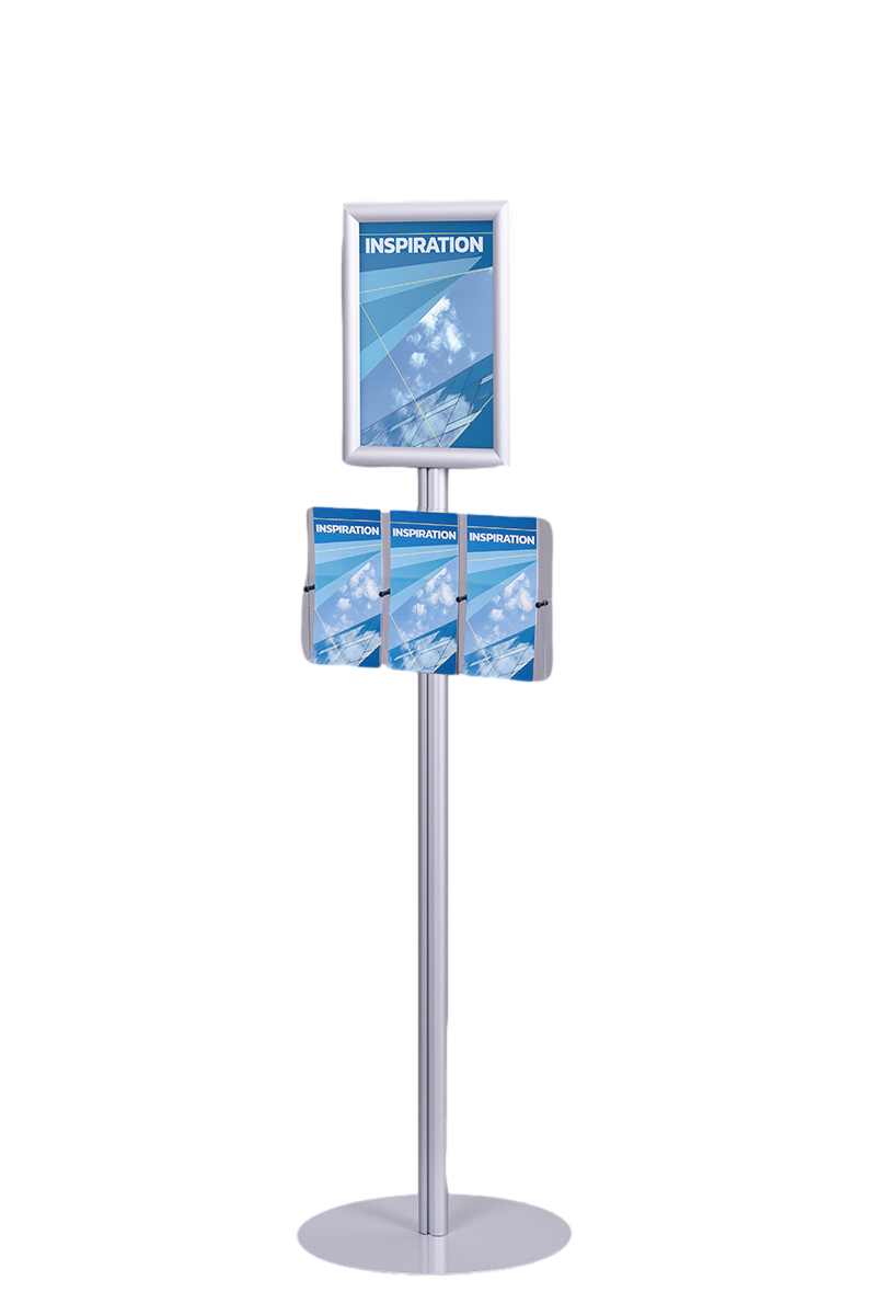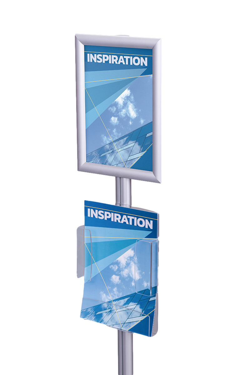 Stojak na plakat i ulotki SPU004 to funkcjonalne i estetyczne rozwiązanie do prezentacji plakatów i ulotek w przestrzeniach takich jak biura, urzędy, hotele czy salony motoryzacyjne.