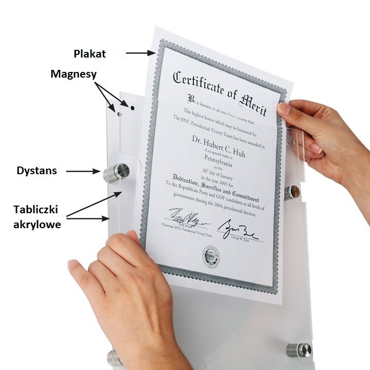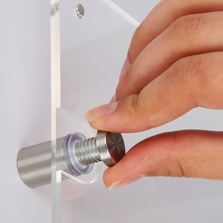 To idealne rozwiązanie dla miejsc, w których często wymieniane są plakaty lub informacje – takich jak recepcje, biura, hotele, gabinety, restauracje czy galerie sztuki. Dzięki przemyślanemu systemowi montażu, zmiana treści jest szybka i nie wymaga demontażu całej konstrukcji – wystarczy odkręcić górne części dystansów, podmienić plakat i ponownie dokręcić.