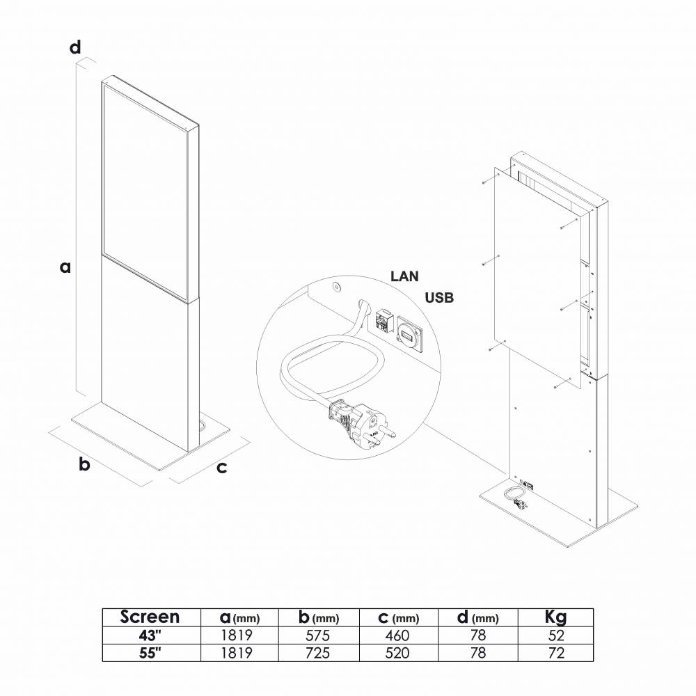 | 43" | 55" | ||