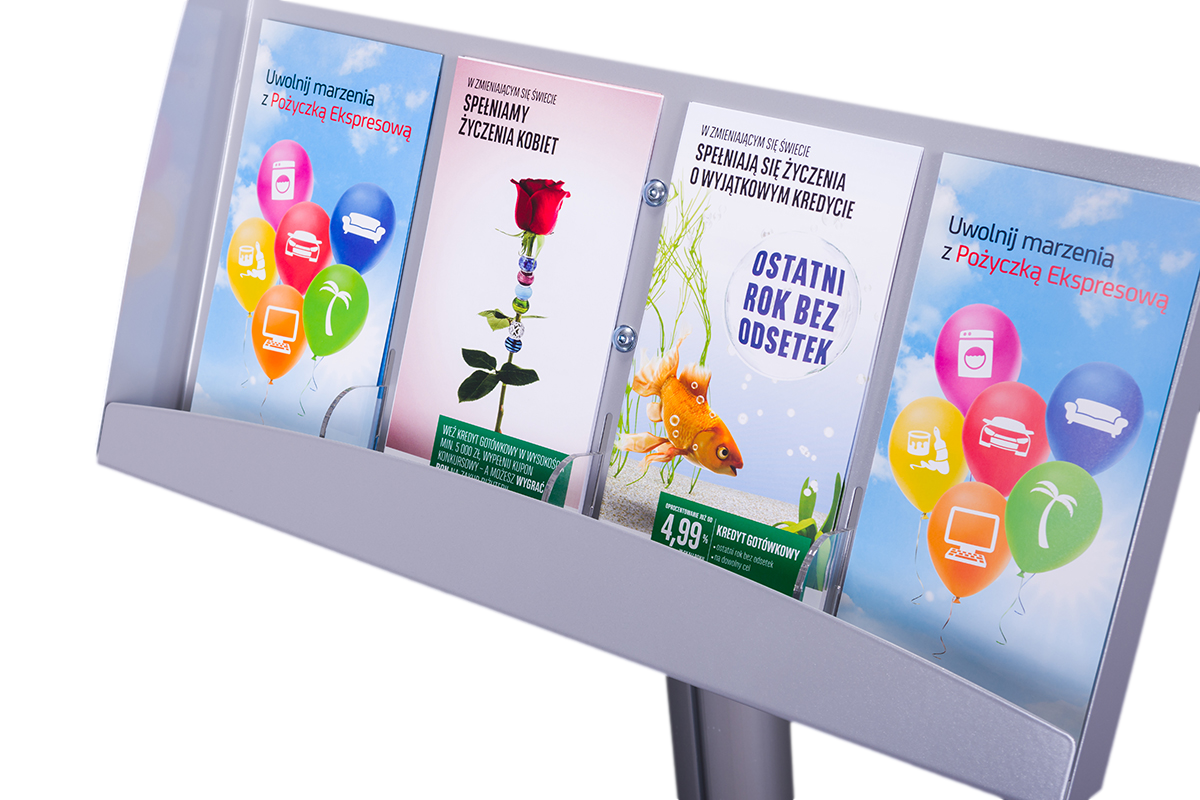 Stojak na ulotki SU002 jest zaprojektowany z myślą o stabilności, co sprawia, że doskonale radzi sobie w miejscach o dużym ruchu. Jego konstrukcja zapewnia odpowiednie wsparcie, dzięki czemu nie przewraca się łatwo, nawet w zatłoczonych przestrzeniach. Dodatkowo, stojak jest lekki, co ułatwia jego przenoszenie i transport, co czyni go praktycznym rozwiązaniem na targi i wystawy, gdzie mobilność jest kluczowa.