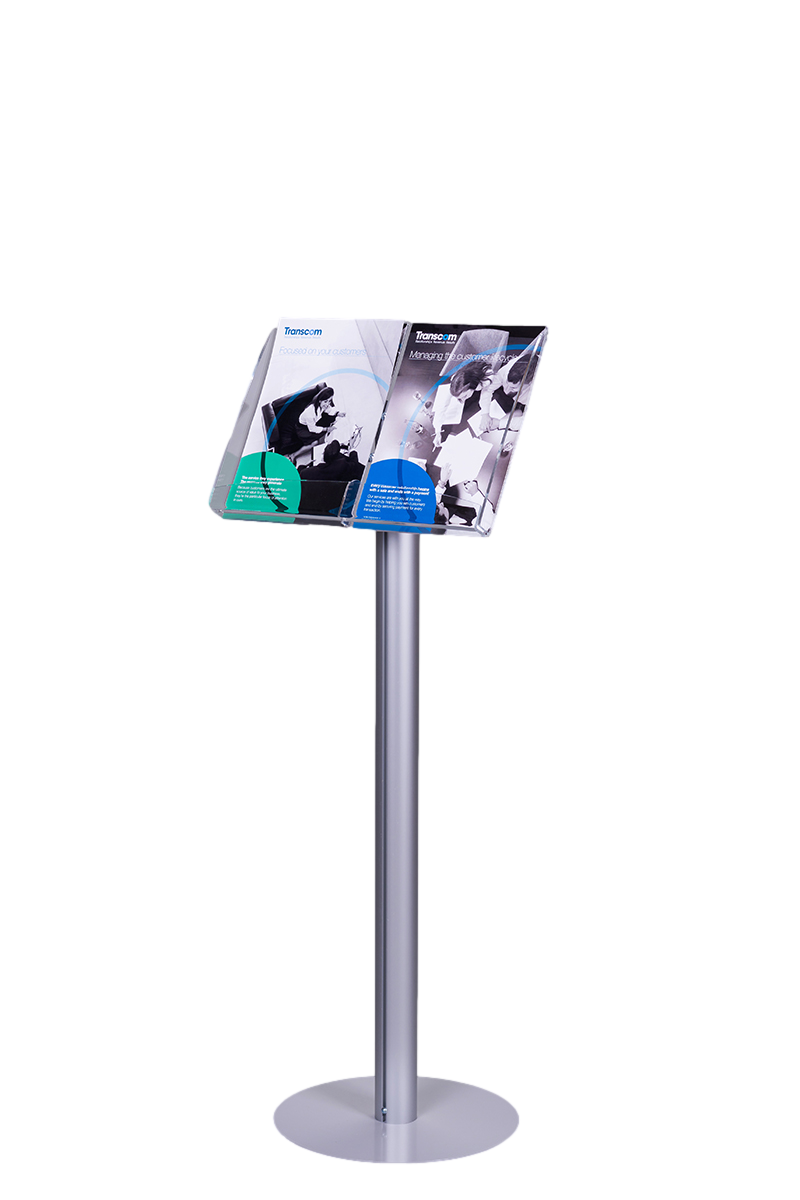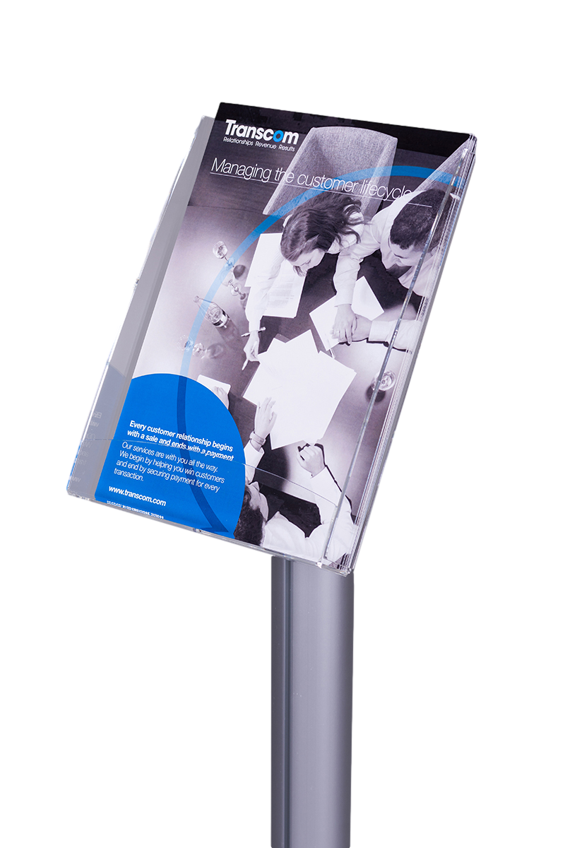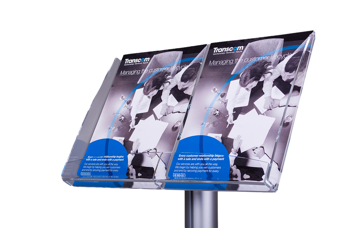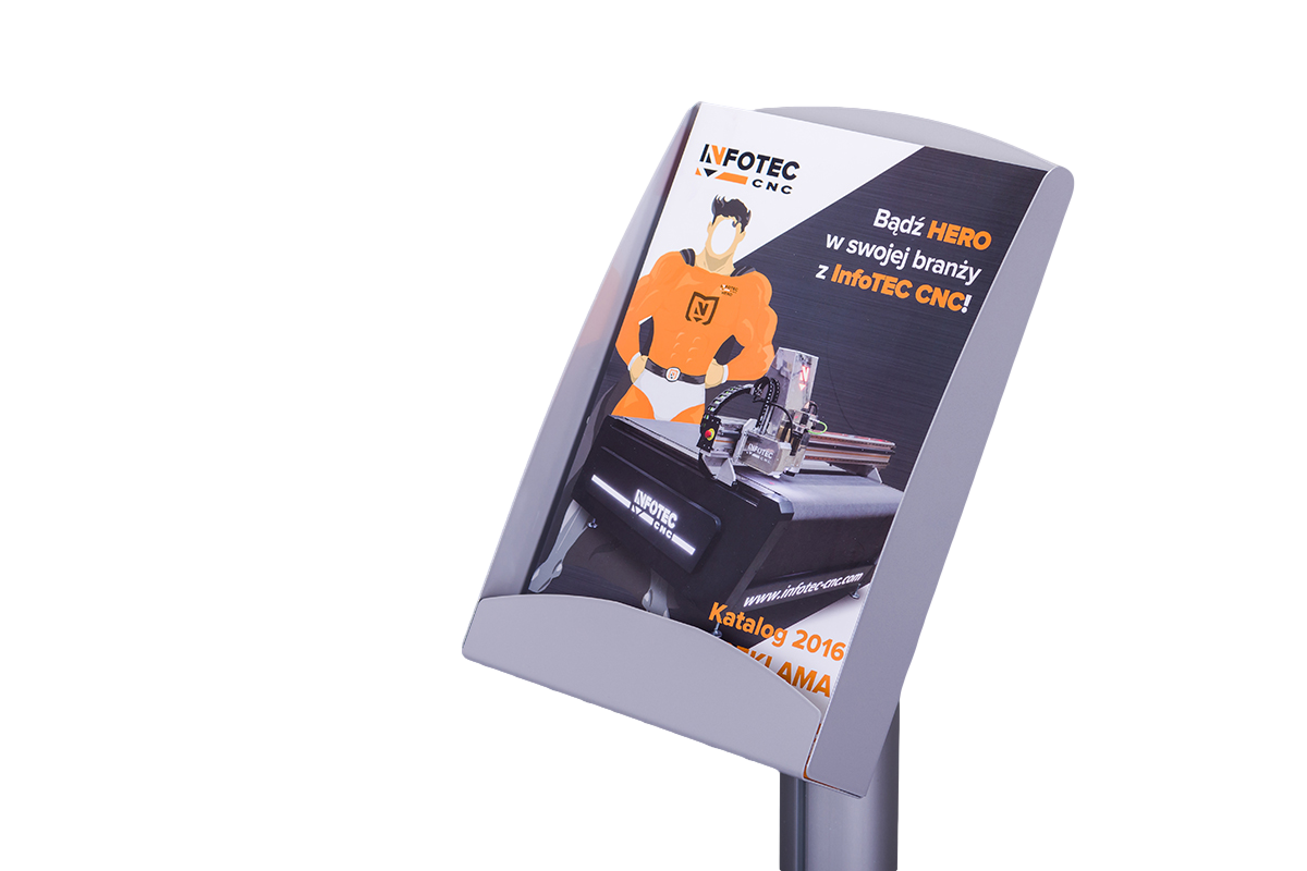 Stojak na ulotki SU002 ma wysokość ok. 115cm w zależności od wielkości kieszeni .Posiada kieszenie przystosowane do różnych formatów, w tym A4, DL oraz 2xA5. Dokładne wymiary kieszeni to: