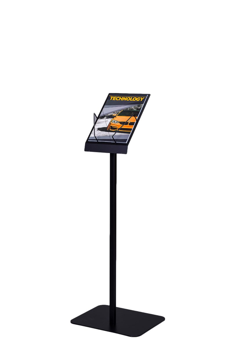 Wolnostojący, czarny stojak na ulotki SU003